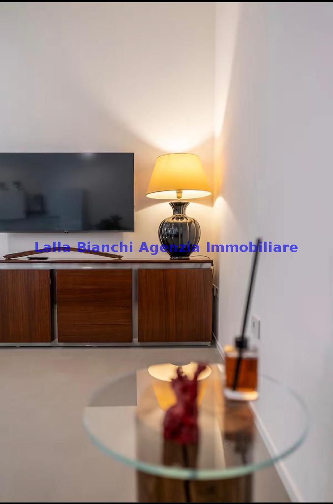 L'immobile è completamente arredato, composto da ampia zona living con angolo cottura, disimpegno, bagno, camera matrimoniale con bagno privato, seconda camera; oltre che un vano tecnico sfruttabile anche come deposito bici. Al piano superiore collegato da ascensore interno troviamo una splendida terrazza allestita con tenda e barbecue.