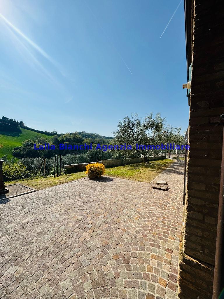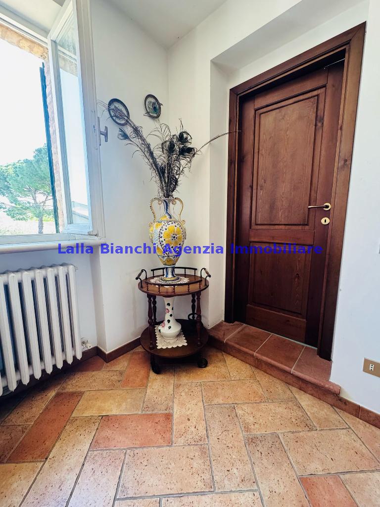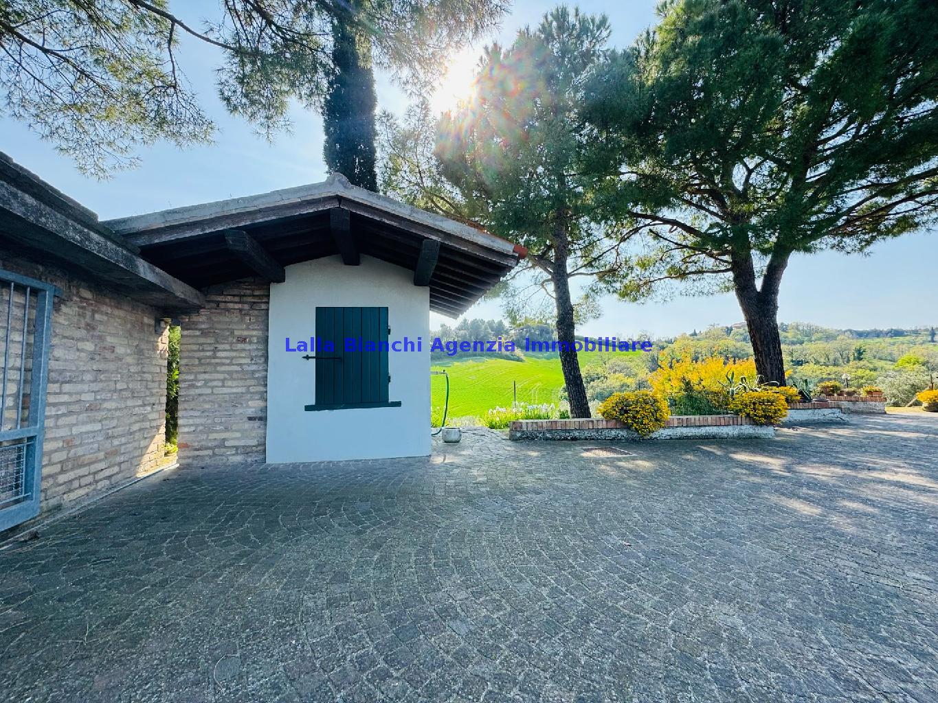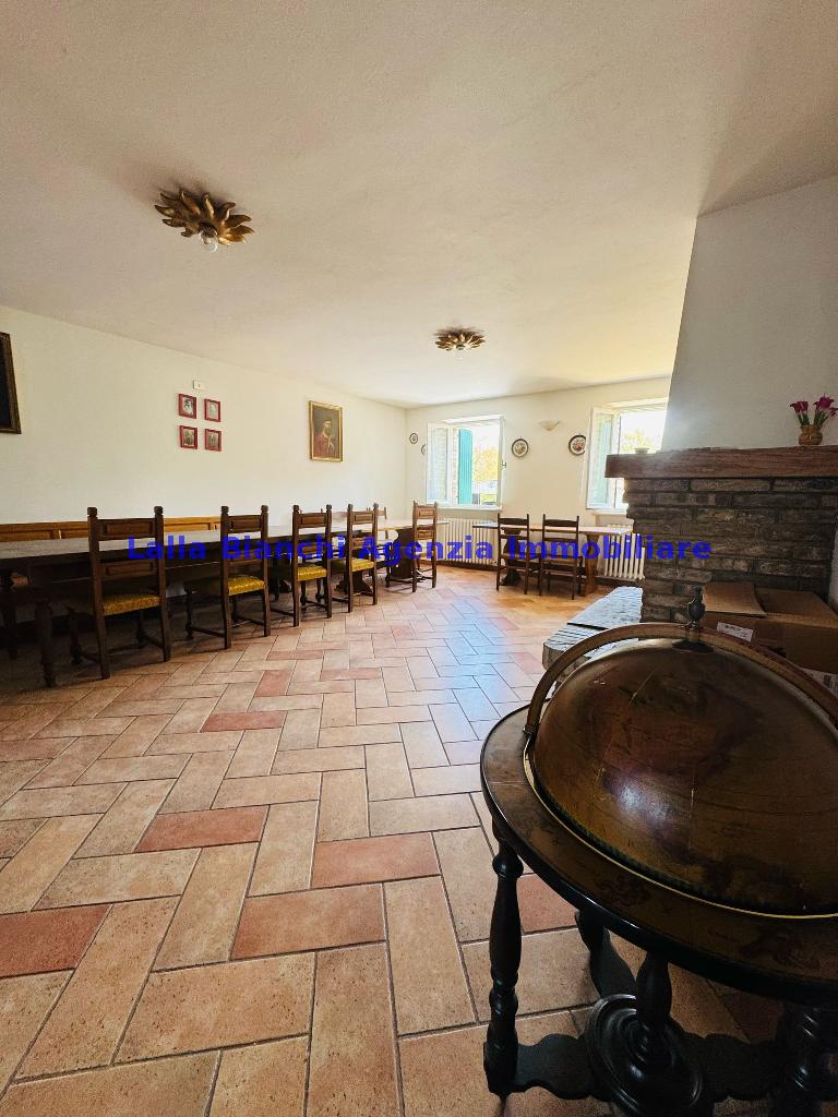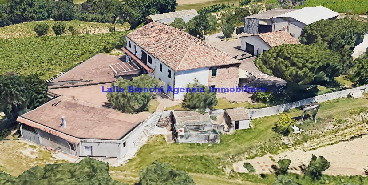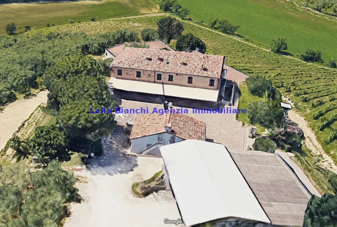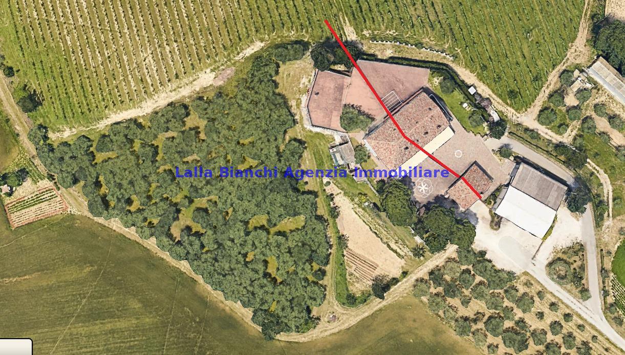 FANO (PU) / SANT'ANDREA IN VILLIS: Cod. Rif. V 9215 - L'AGENZIA IMMOBILIARE LALLA BIANCHI propone in VENDITA in località Sant'Andrea in Villis di Fano (PU), posto sulla vallata in prossimità dell'autostrada, vendesi antico casolare abbinato un lato, di totali 300 mq disposto su due piani, in ottime condizioni abitative frutto di una totale e completa ristrutturazione, suddiviso sia fisicamente sia catastalmente in due distinti appartamenti, oltre ad ampi accessori tipo soffitta di circa 200 mq, dependance esterna di totali 88 mq su due piani, magazzino / deposito macchine agricole interrato di circa 345 mq, scoperto privato di circa 1700 mq e terreno agricolo tutt'intorno alla dimora di circa 12 ettari.