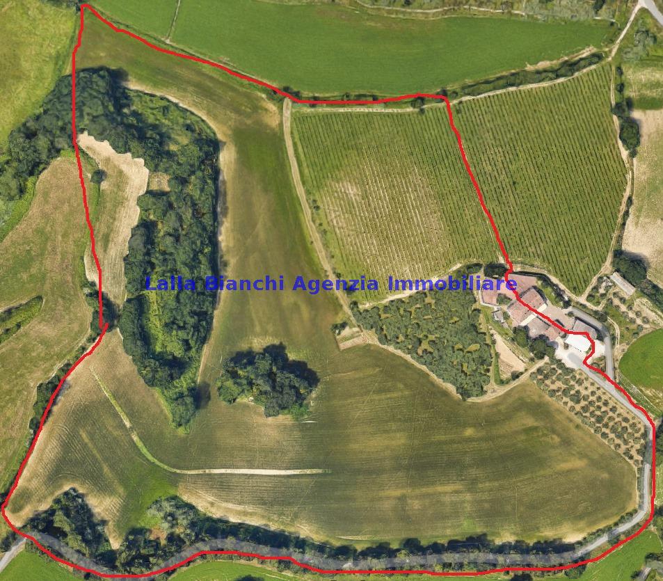 In ultimo è presente un terreno agricolo che circonda la dimora di circa 12 ettari, ripartito in vigneto e uliveto per circa 3,25 ettari, a bosco per circa 1,2 ettari e i restanti 7,55 ettari ad uso seminativo.